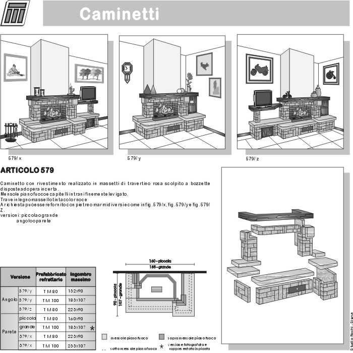 A richiesta può essere fornito con pietre o marmi diversi e come in fig. 579/x, fig. 579/y e fig. 579/Z.
